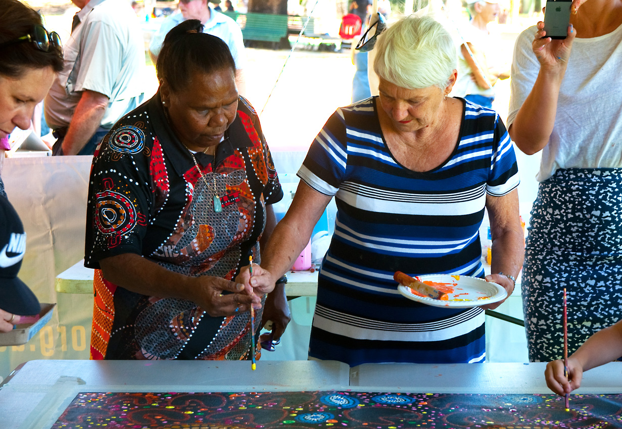 Neta handles being the center of attention with grace and a patience born from the oldest living culture on the planet. Among all the grounded, relaxed, absorbed people making art -the politicians flap around like attention seeking aliens but she treats them just the same. ‘Oh hello Neta I’m the member for blah, blah, blah and I just wanted to introduce myself…’